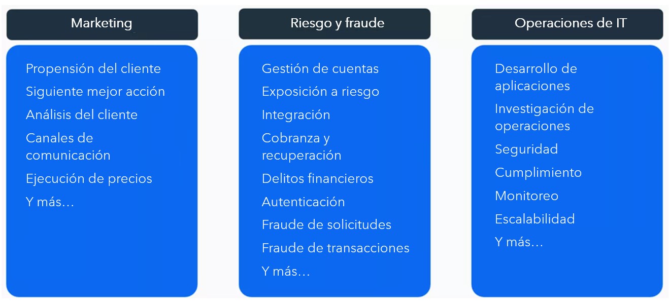 Hemos visto cómo algunas organizaciones líderes utilizan las plataformas de toma de decisiones para potenciar este tipo de decisiones en todas las etapas y líneas de negocio, a fin de lograr un control óptimo del proceso del cliente: desde la adquisición y la gestión del cliente hasta la prevención de cobranza.
