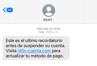 Evita hacer clic en enlaces sospechosos recibidos por SMS, incluso si el mensaje parece provenir de un servicio de streaming legítimo (o de cualquier otro tipo). En su lugar, visita siempre el sitio web oficial ingresando la dirección manualmente o accediendo a través de la aplicación para verificar el estado real de tu cuenta.