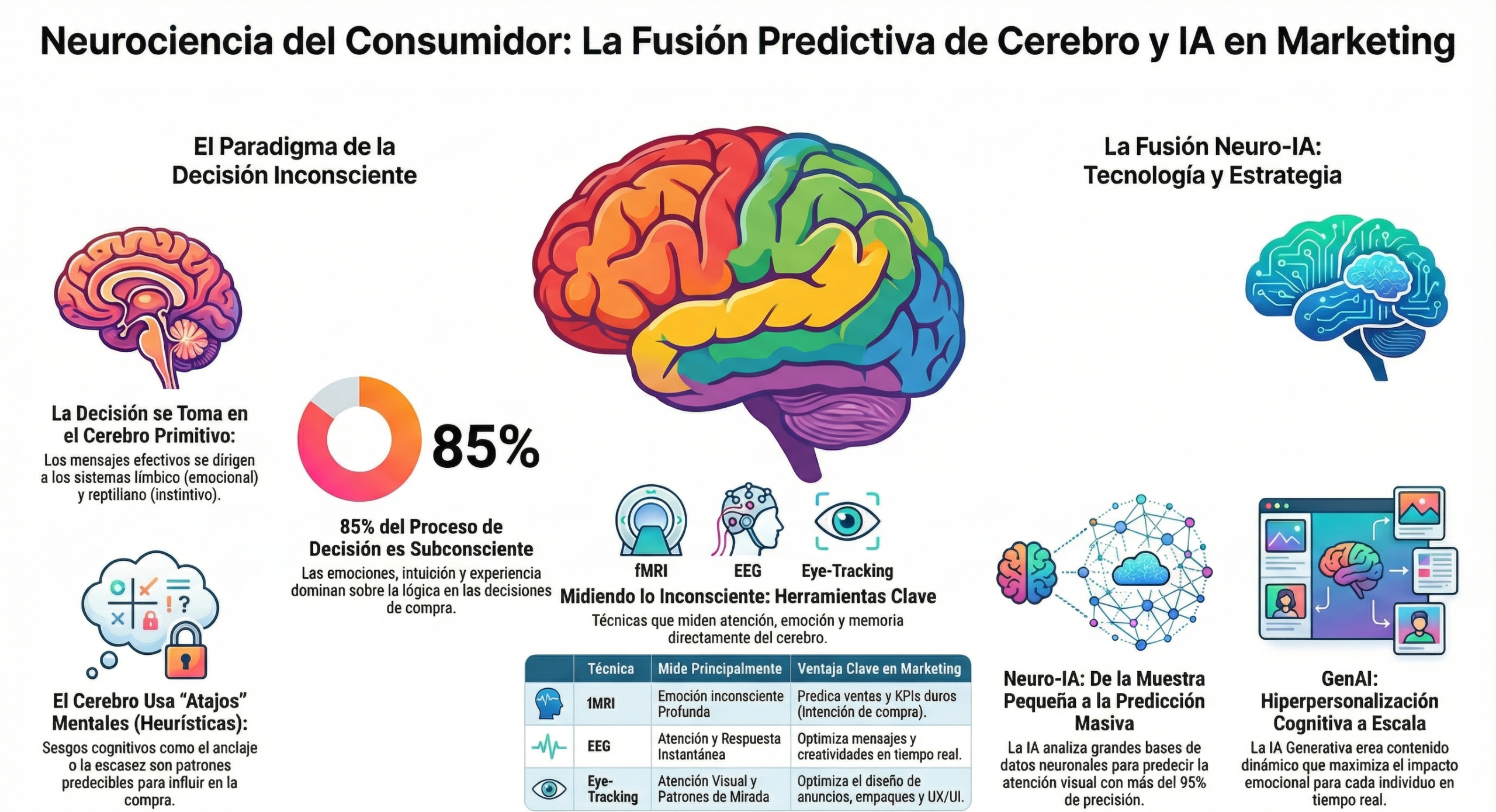 La fusión de IA y neurociencia nos ha dado las llaves del reino de la mente. Podemos predecir, influir y personalizar como nunca antes en la historia del comercio.