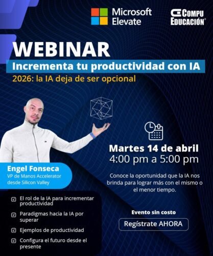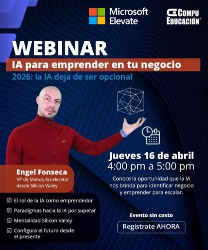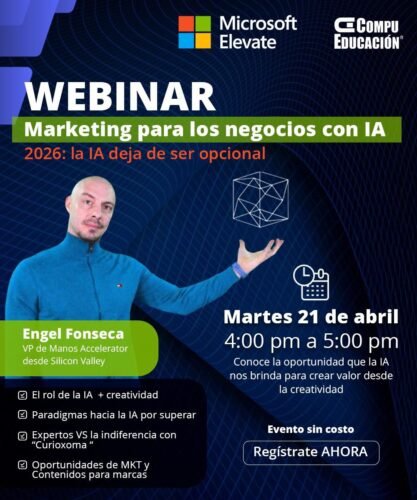 Esta alianza estratégica se materializa con el lanzamiento de tres webinars de alto impacto y completamente gratuitos en la plataforma Microsoft Elevate, con el propósito de democratizar el acceso a la IA para empresarios, emprendedores, creativos y profesionales en todo el territorio nacional. Bajo el lema «2026: la IA deja de ser opcional», estos eventos marcan un punto de inflexión al demostrar que la inteligencia artificial ya no es solo una ventaja competitiva, sino una necesidad estratégica para sobrevivir y crecer en el mercado actual.
