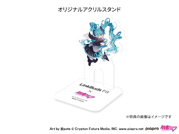 El set incluye los audífonos LinkBuds Fit (disponibles en color negro, blanco, verde o rosa), un personaje digital original exclusivo de Sony Store de Hatsune Miku, “HoloModel”, y una base de acrílico con una ilustración recientemente diseñada.[1]