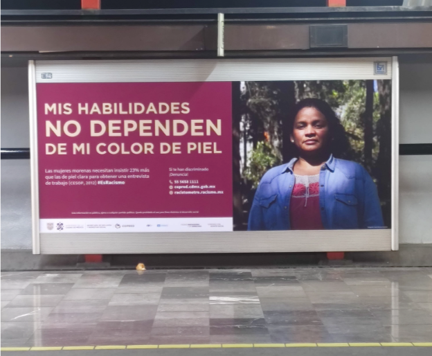 Cada uno de los anuncios, que se podrán encontrar en todo el Sistema de Transporte Público de la Ciudad de México, está acompañado del teléfono y el correo del Consejo para Eliminar y Prevenir la Discriminación de la Ciudad de México (COPRED), además de la página del Racistómetro (https://racistometro.racismo.