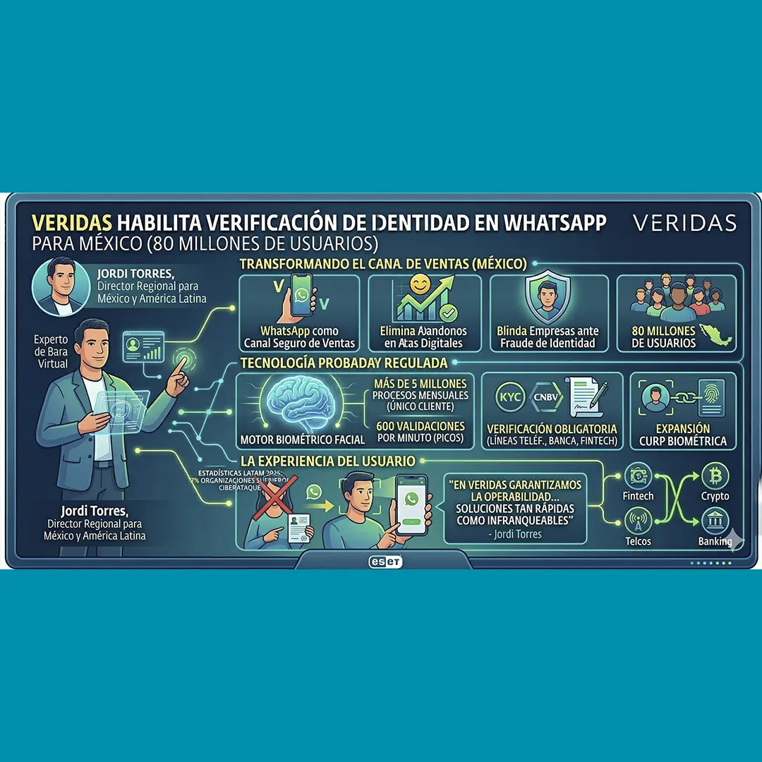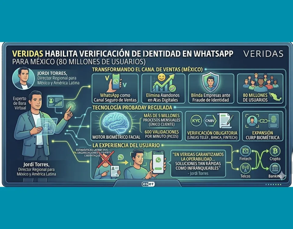 Tiempo de lectura: < 1 minutoVeridas habilita su verificación de identidad desde WhatsApp Ciudad de México, 7 de abril de 2026. Actualmente, Veridas anunció una gran innovación tecnológica digitalmente. Específicamente, la […]