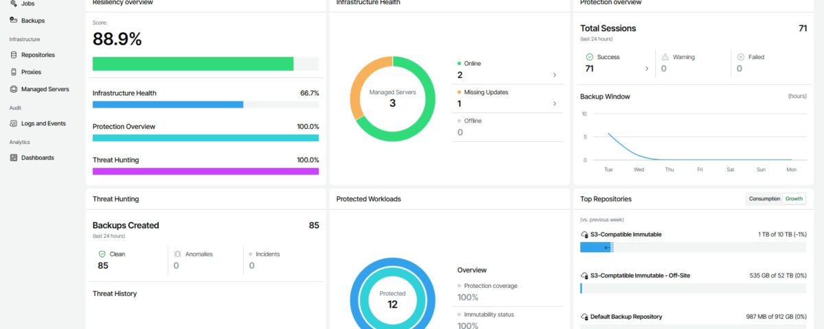 “Con el nuevo Veeam Software Appliance, podemos escalar más rápido y dar de alta a más clientes con confianza. Elimina la complejidad y el riesgo de las implementaciones, y estamos comprometidos con esta implementación para nuestras próximas ofertas de Veeam Data Platform. La implementación basada en ISO, con el potencial de automatización de arranque, significa que podemos implementar dispositivos a escala con mayor eficiencia. Estamos ansiosos por la nueva experiencia de actualización: el parcheo automático ayudará a reducir aún más los gastos generales de mantenimiento y garantizar la seguridad”. – Edouard Kutchukian, Gestión de Productos, Productos de Infraestructura, Asociaciones y Pre-ventas en Datacom.